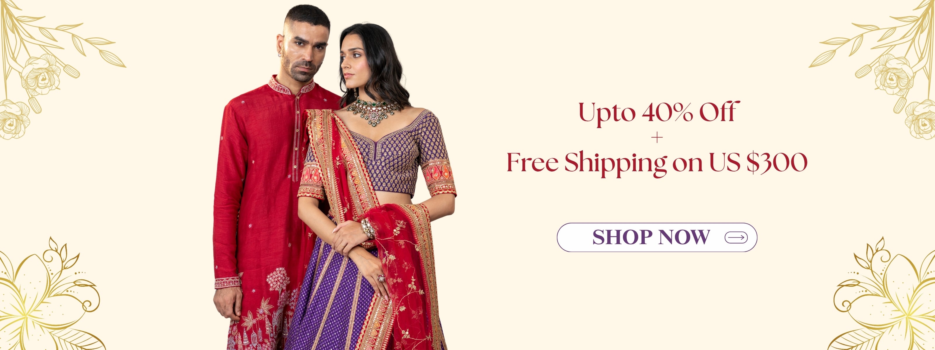 WINE IMPORTED NAWABI WITH SEQUINS AND RESHAM EMBROIDERY