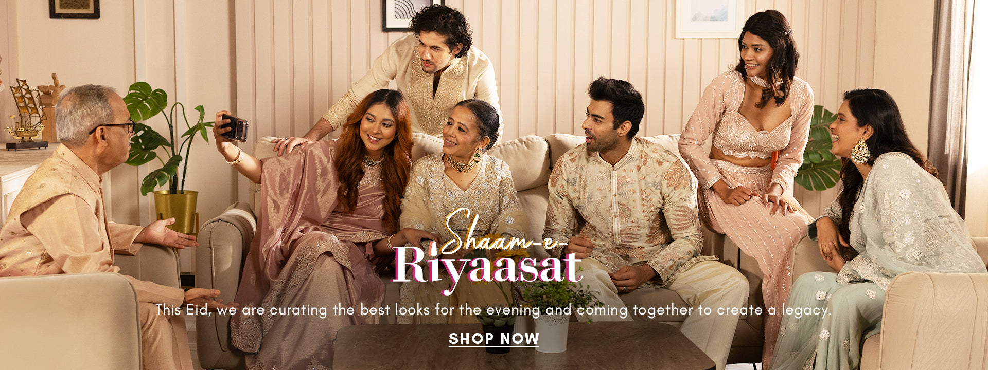 Golden Tissue Indo Western with Cutdana and Moti Work