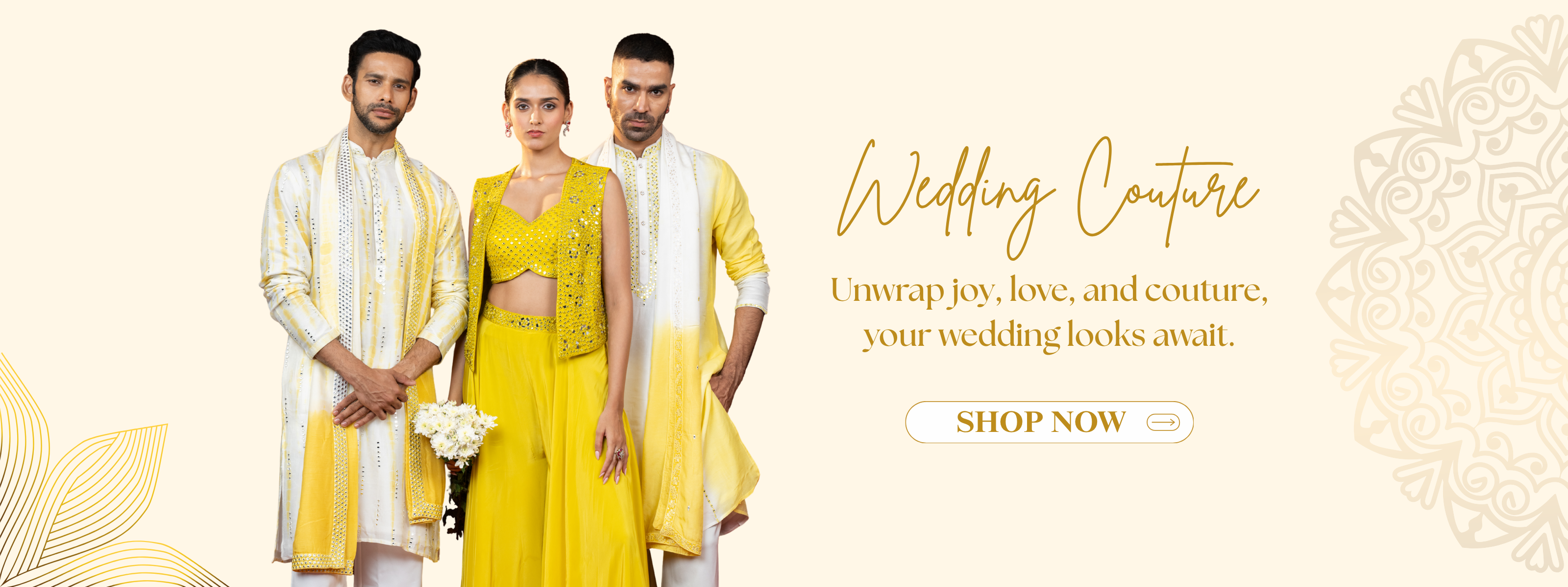 YELLOW CHINON SILK INDO WESTERN WITH CUTDANA AND MOTI