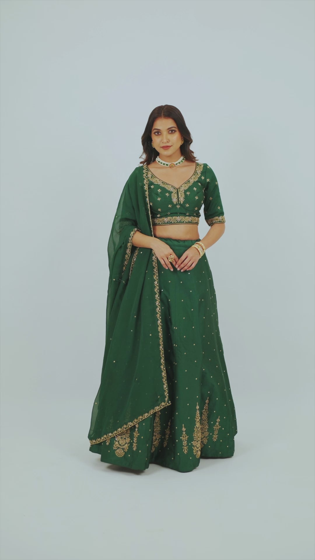 Bottle green soft silk zardozi embroidered lehenga choli with hand cut dana work