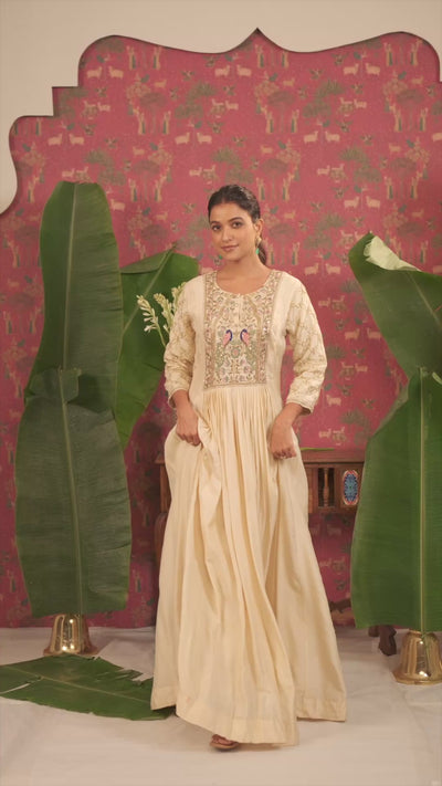 Cream Silk Anarkali with Zardosi and Resham Embroidery