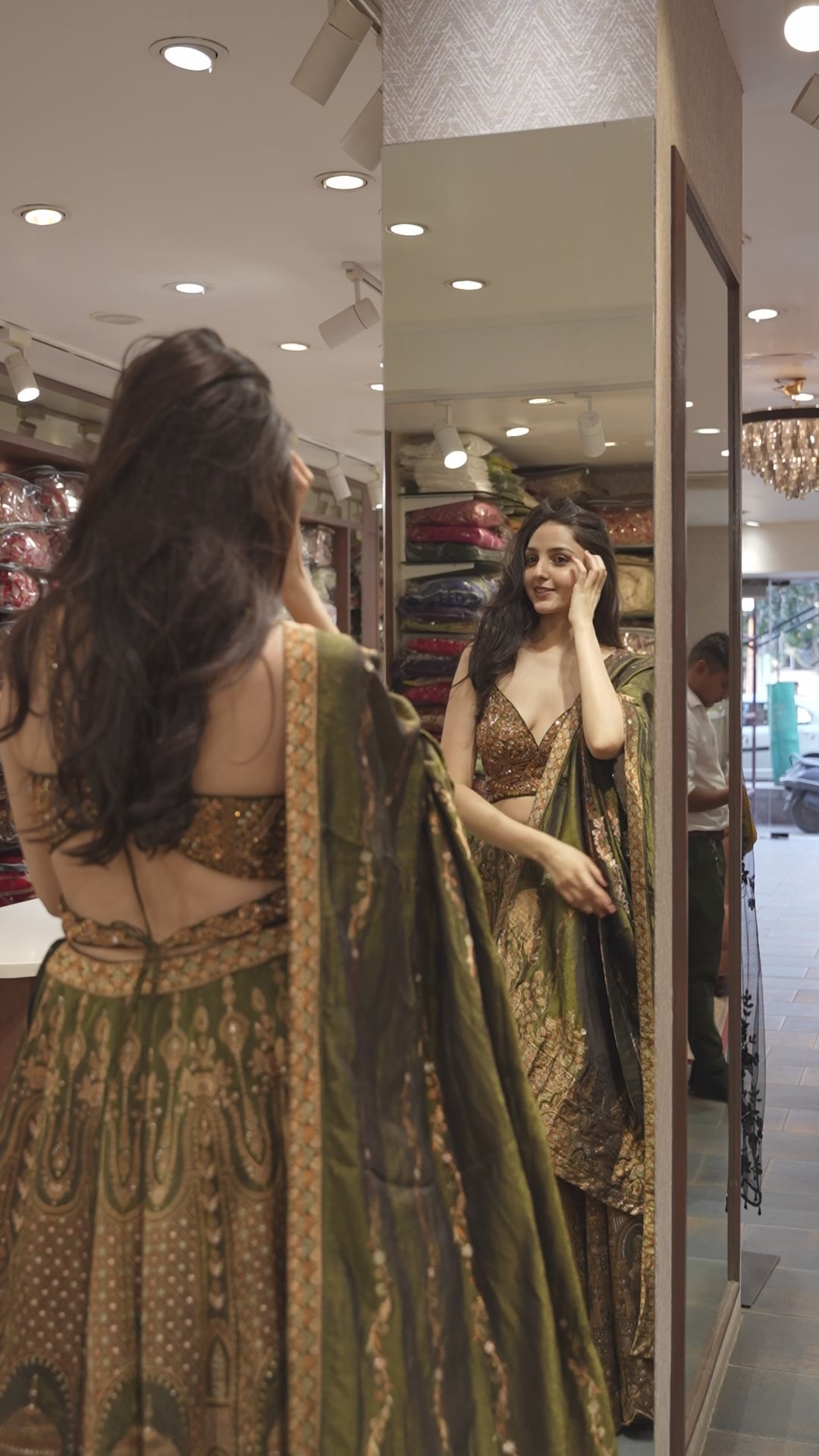 Mehendi Green Banarasi Tissue Lehenga Choli with Zardosi and Sequins Work