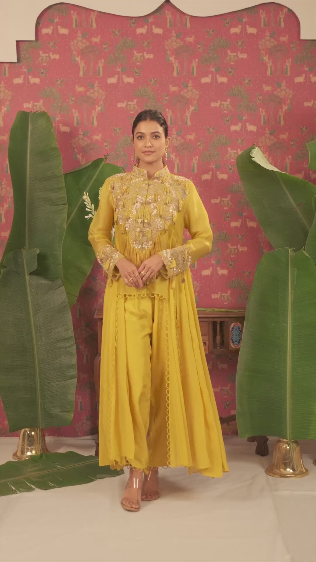 Mustard Yellow Silk Indo Western with Zardosi and Cutdana Work