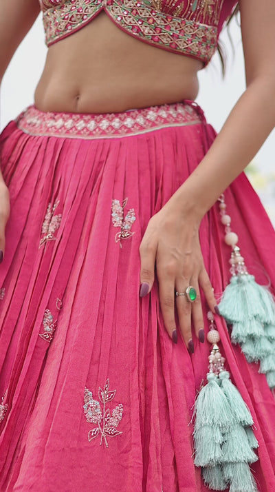 PINK TISSUE LEHENGA CHOLI WITH MIROR AND CUTDANA WORK