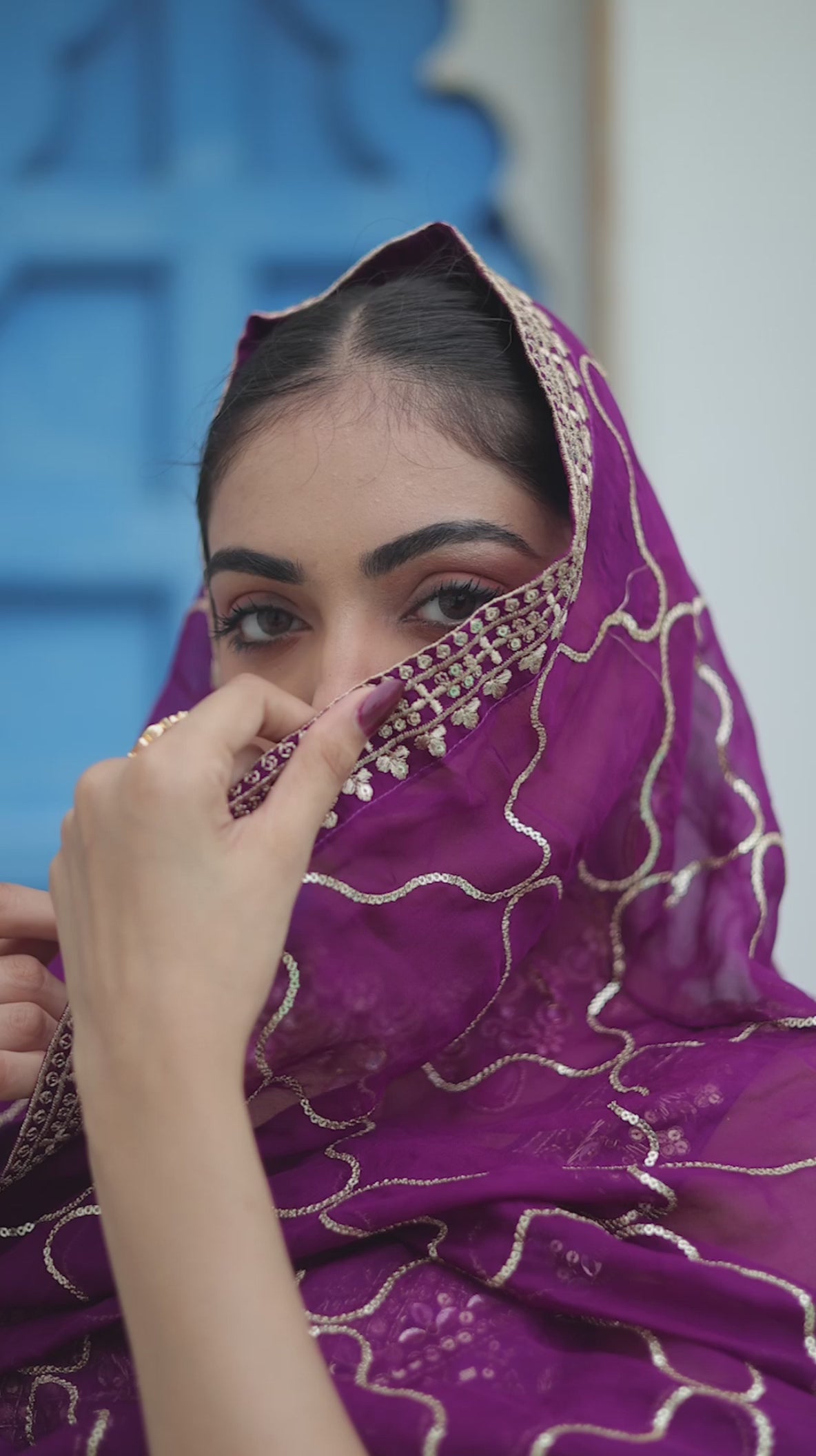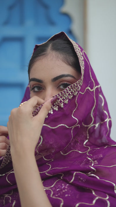 PURPLE BANARSI SILK LEHENGA CHOLI WITH WEAVING AND CUTDANA WORK